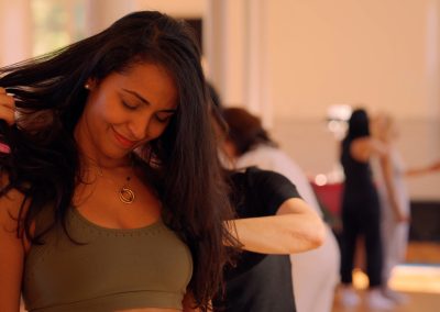 En sus clases te guiará con el canto y la percusión, llevándote a conectar el movimiento con la respiración para entrar en un estado de meditación en movimiento.